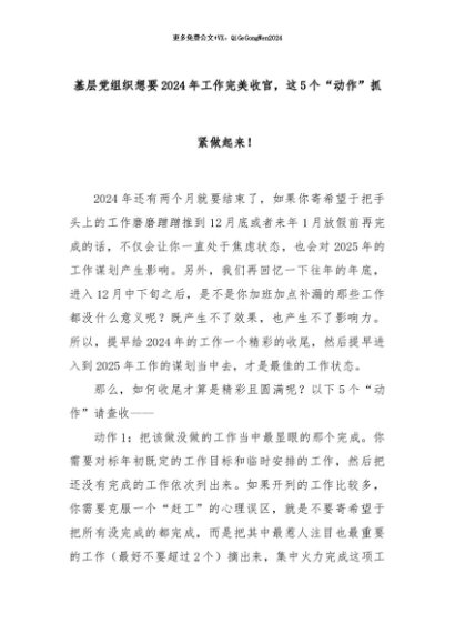 【七哥公文】2024年:基层党组织想要2024年工作完美收官,这5个“动作”抓紧做起来!+更多免费公文+VX:QiGeGongWen2024