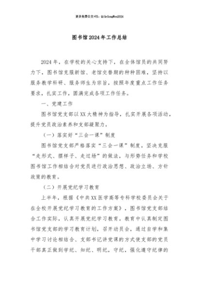 / 【七哥公文】2024年:图书馆2024年工作总结+更多免费公文+VX:QiGeGongWen2024