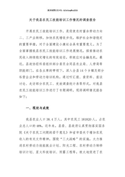 / 【七哥公文】2024年:关于我县农民工技能培训工作情况的调查报告+更多免费公文+VX:QiGeGongWen2024