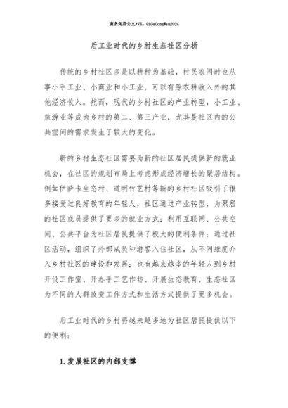 / 【七哥公文】2024年:后工业时代的乡村生态社区分析+更多免费公文+VX:QiGeGongWen2024