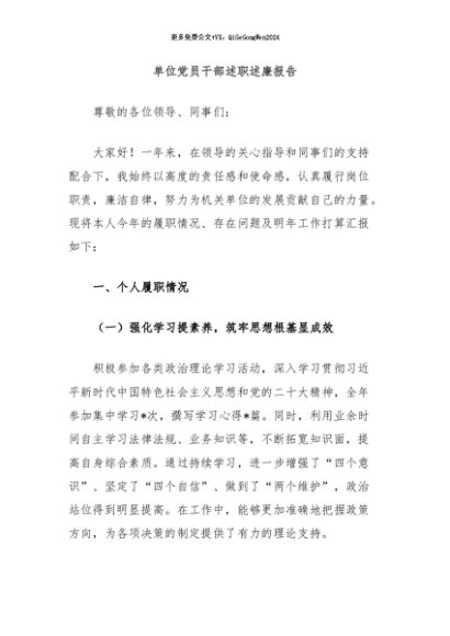 / 【七哥公文】2024年:单位党员干部述职述廉报告+更多免费公文+VX:QiGeGongWen2024