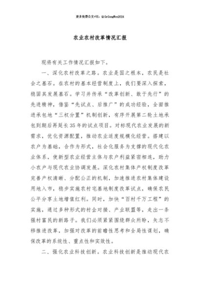 / 【七哥公文】2024年:农业农村改革情况汇报+更多免费公文+VX:QiGeGongWen2024