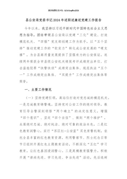 / 【七哥公文】2024年:县公安局党委书记2024年述职述廉述党建工作报告+更多免费公文+VX:QiGeGongWen2024