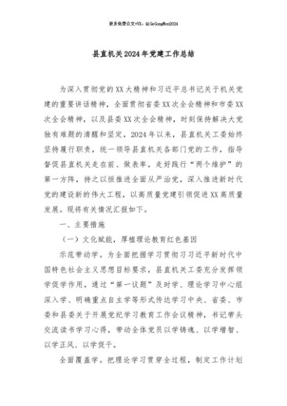 / 【七哥公文】2024年:县直机关2024年党建工作总结+更多免费公文+VX:QiGeGongWen2024