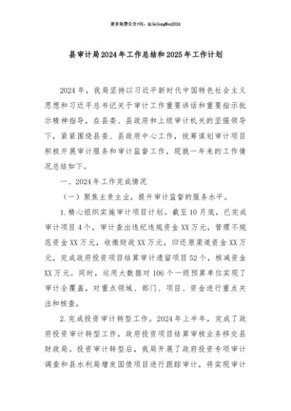 / 【七哥公文】2024年:县审计局2024年工作总结和2025年工作计划+更多免费公文+VX:QiGeGongWen2024
