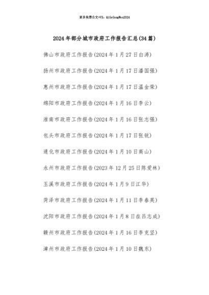 / 【七哥公文】2024年:(34篇)2024年部分城市政府工作报告汇总+更多免费公文+VX:QiGeGongWen2024