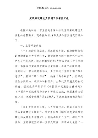 / 【七哥公文】2024年:党风廉政建设责任制工作情况汇报+更多免费公文+VX:QiGeGongWen2024
