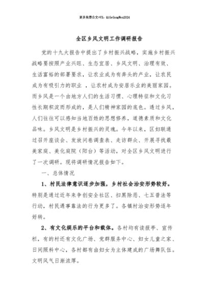 / 【七哥公文】2024年:全区乡风文明工作调研报告+更多免费公文+VX:QiGeGongWen2024