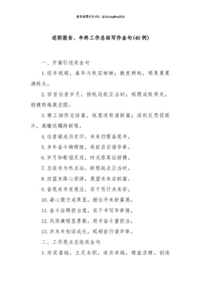 / 【七哥公文】2024年:(40例)述职报告、年终工作总结写作金句+更多免费公文+VX:QiGeGongWen2024