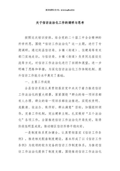/ 【七哥公文】2024年:关于信访法治化工作的调研与思考+更多免费公文+VX:QiGeGongWen2024