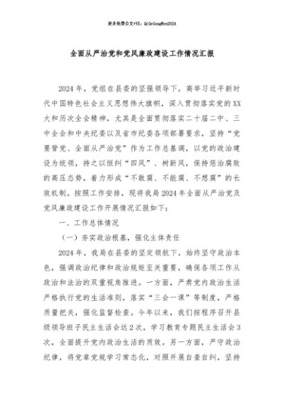 / 【七哥公文】2024年:全面从严治党和党风廉政建设工作情况汇报+更多免费公文+VX:QiGeGongWen2024