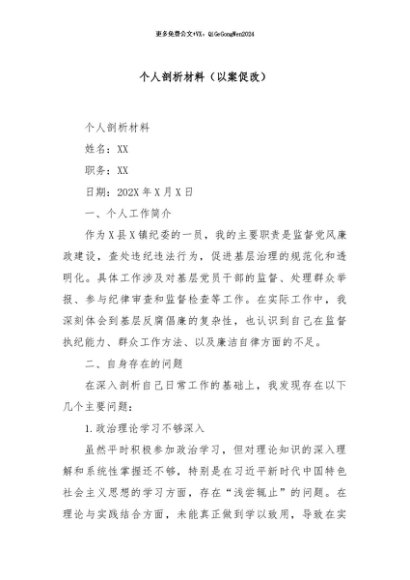 / 【七哥公文】2024年:个人剖析材料(以案促改)+更多免费公文+VX:QiGeGongWen2024