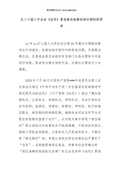 【七哥公文】2024年:从二十届三中全会《决定》看侦查权检察权相互制约的思考+更多免费公文+VX:QiGeGongWen2024