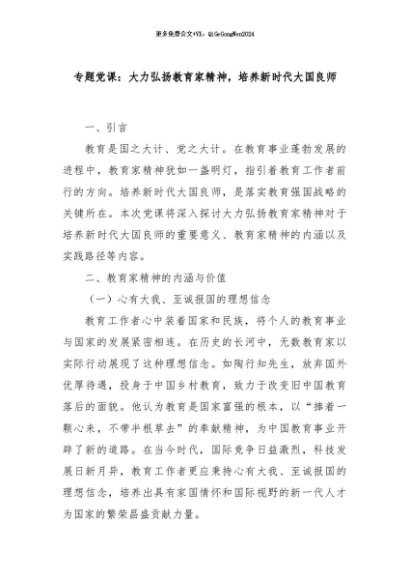 / 【七哥公文】2024年:专题党课:大力弘扬教育家精神,培养新时代大国良师+更多免费公文+VX:QiGeGongWen2024
