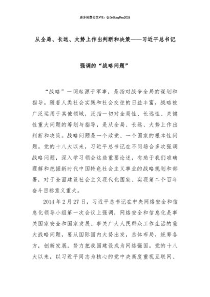 【七哥公文】2024年:从全局、长远、大势上作出判断和决策——习近平总书记强调的“战略问题”+更多免费公文+VX:QiGeGongWen2024