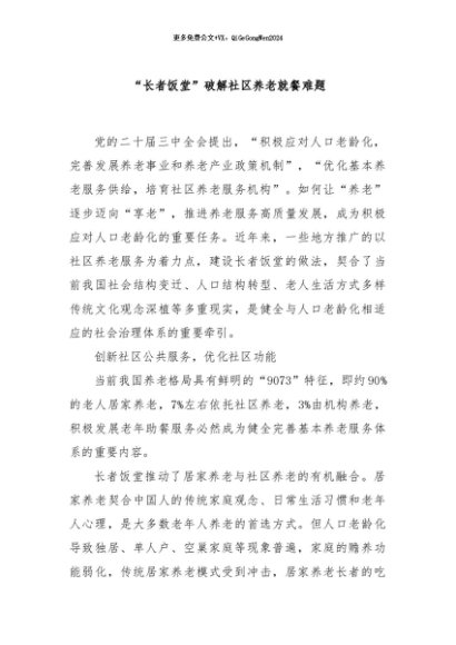 / 【七哥公文】2024年:“长者饭堂”破解社区养老就餐难题+更多免费公文+VX:QiGeGongWen2024