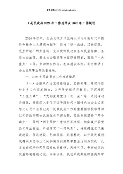 / 【七哥公文】2024年:X县民政局2024年工作总结及2025年工作规划+更多免费公文+VX:QiGeGongWen2024