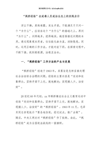 / 【七哥公文】2024年:“枫桥经验”在戒毒人员戒治生态上的实践启示+更多免费公文+VX:QiGeGongWen2024