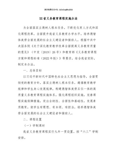 【七哥公文】2024年:XX省义务教育课程实施办法+更多免费公文+VX:QiGeGongWen2024