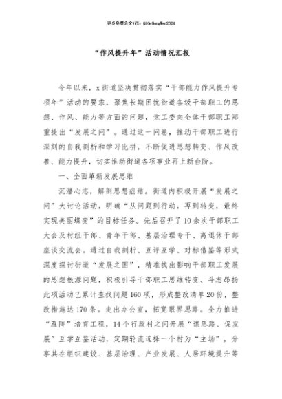 / 【七哥公文】2024年:“作风提升年”活动情况汇报+更多免费公文+VX:QiGeGongWen2024