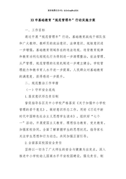 / 【七哥公文】2024年:XX市基础教育“规范管理年”行动实施方案+更多免费公文+VX:QiGeGongWen2024