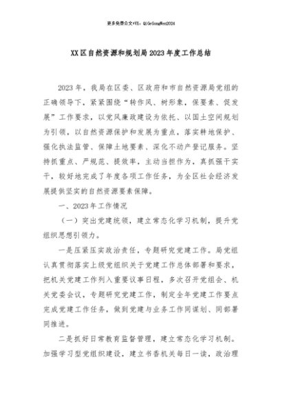 / 【七哥公文】2024年:XX区自然资源和规划局2023年度工作总结+更多免费公文+VX:QiGeGongWen2024