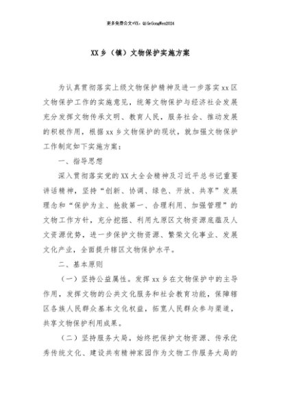 / 【七哥公文】2024年:XX乡(镇)文物保护实施方案+更多免费公文+VX:QiGeGongWen2024