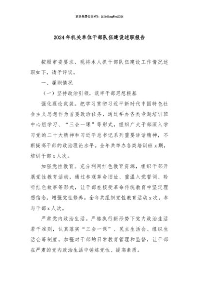 / 【七哥公文】2024年:2024年机关单位干部队伍建设述职报告+更多免费公文+VX:QiGeGongWen2024