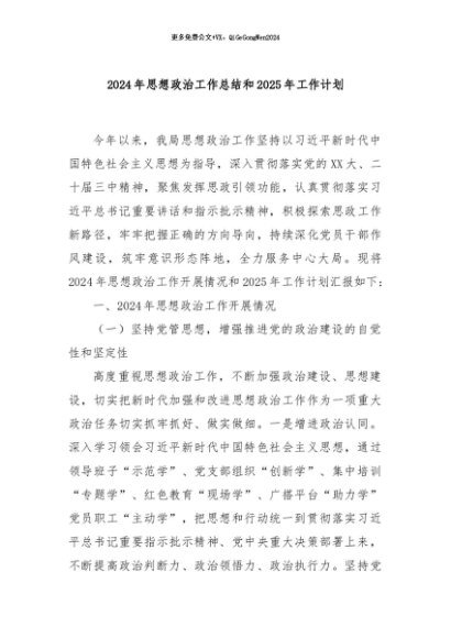 / 【七哥公文】2024年:2024年思想政治工作总结和2025年工作计划+更多免费公文+VX:QiGeGongWen2024