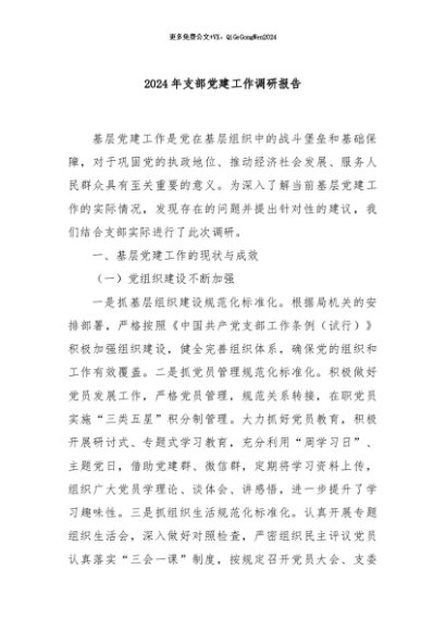 / 【七哥公文】2024年:2024年支部党建工作调研报告+更多免费公文+VX:QiGeGongWen2024