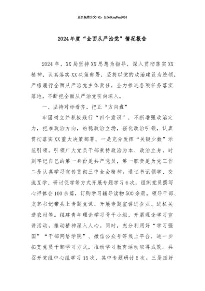 / 【七哥公文】2024年:2024年度“全面从严治党”情况报告+更多免费公文+VX:QiGeGongWen2024
