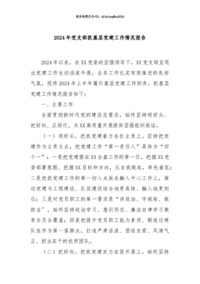 / 【七哥公文】2024年:2024年党支部抓基层党建工作情况报告+更多免费公文+VX:QiGeGongWen2024