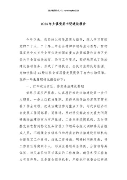 / 【七哥公文】2024年:2024年乡镇党委书记述法报告+更多免费公文+VX:QiGeGongWen2024