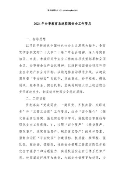 / 【七哥公文】2024年:2024年全市教育系统校园安全工作要点+更多免费公文+VX:QiGeGongWen2024