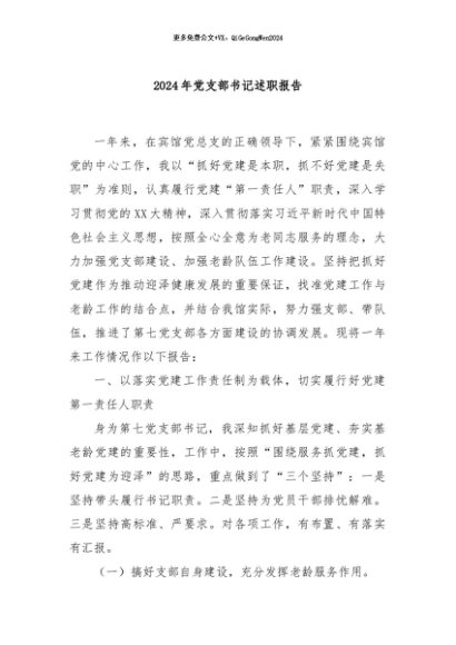 / 【七哥公文】2024年:2024年党支部书记述职报告+更多免费公文+VX:QiGeGongWen2024