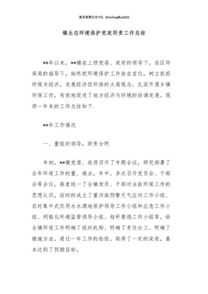 / 【七哥公文】2024年:镇生态环境保护党政同责工作总结+更多免费公文+VX:QiGeGongWen2024