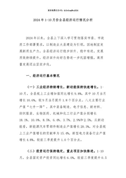 / 【七哥公文】2024年:2024年1-10月份全县经济运行情况分析+更多免费公文+VX:QiGeGongWen2024
