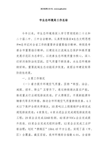/ 【七哥公文】2024年:市生态环境局工作总结+更多免费公文+VX:QiGeGongWen2024