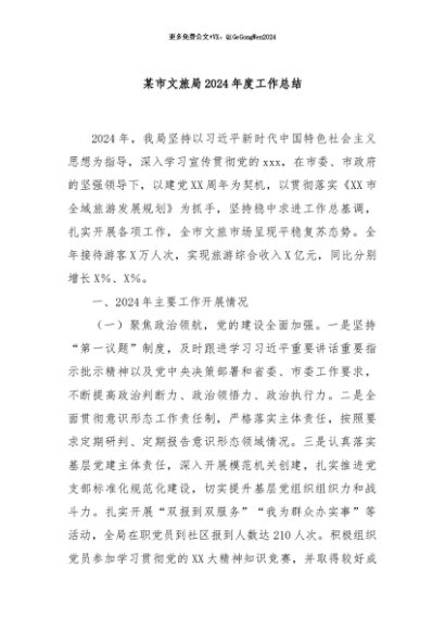 / 【七哥公文】2024年:某市文旅局2024年度工作总结+更多免费公文+VX:QiGeGongWen2024