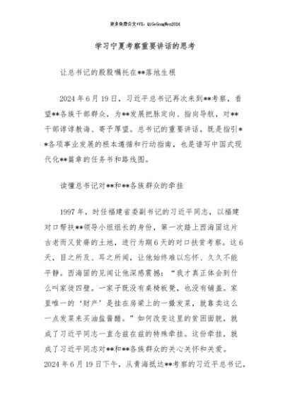 / 【七哥公文】2024年:学习宁夏考察重要讲话的思考+更多免费公文+VX:QiGeGongWen2024