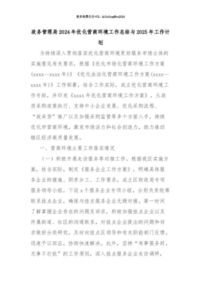 【七哥公文】2024年:政务管理局2024年优化营商环境工作总结与2025年工作计划+更多免费公文+VX:QiGeGongWen2024