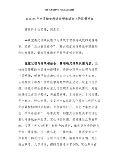 / 【七哥公文】2024年:在2024年全县绩效考评分析推进会上的汇报发言+更多免费公文+VX:QiGeGongWen2024