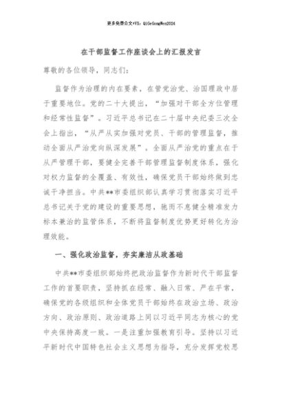 / 【七哥公文】2024年:在干部监督工作座谈会上的汇报发言+更多免费公文+VX:QiGeGongWen2024
