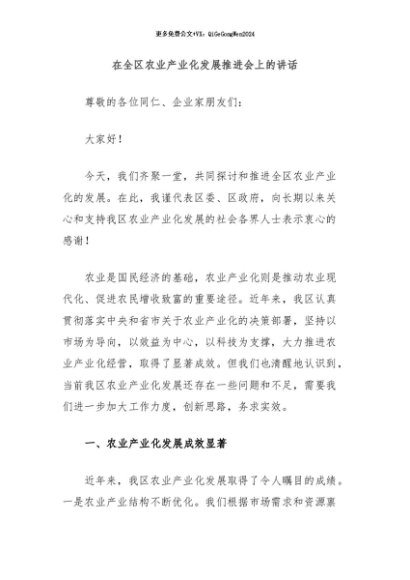 / 【七哥公文】2024年:在全区农业产业化发展推进会上的讲话+更多免费公文+VX:QiGeGongWen2024