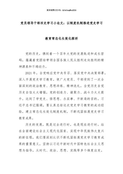 【七哥公文】2024年:党员领导干部四史学习小论文:以制度机制推进党史学习教育常态化长效化探析+更多免费公文+VX:QiGeGongWen2024