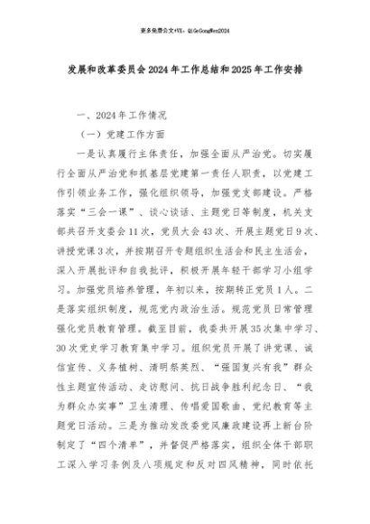 【七哥公文】2024年:发展和改革委员会2024年工作总结和2025年工作安排+更多免费公文+VX:QiGeGongWen2024