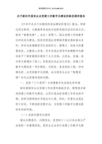 【七哥公文】2024年:关于新时代国有企业党建工作数字化建设的路径探析报告+更多免费公文+VX:QiGeGongWen2024