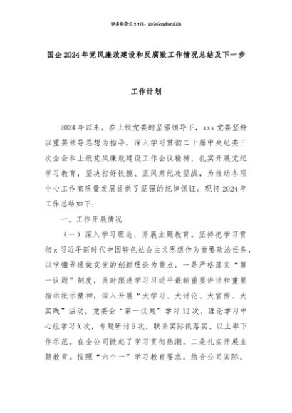 【七哥公文】2024年:国企2024年党风廉政建设和反腐败工作情况总结及下一步工作计划+更多免费公文+VX:QiGeGongWen2024
