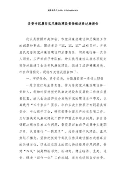 / 【七哥公文】2024年:县委书记履行党风廉政建设责任制述责述廉报告+更多免费公文+VX:QiGeGongWen2024