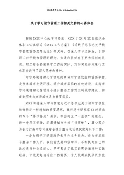 / 【七哥公文】2024年:关于学习城市管理工作相关文件的心得体会+更多免费公文+VX:QiGeGongWen2024